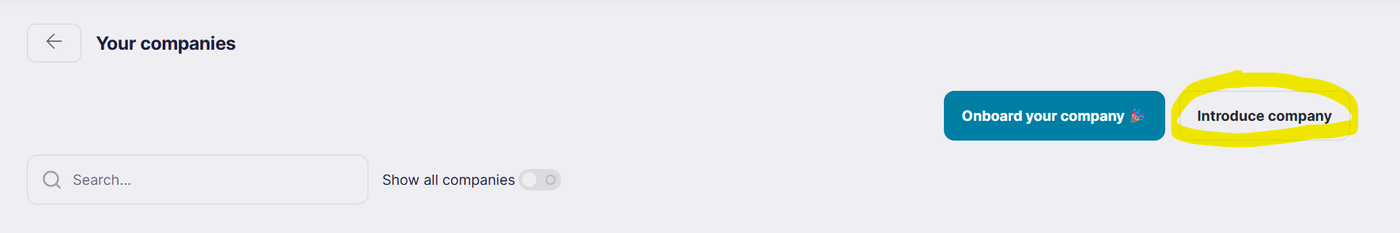 Click Introduce company: On the Companies List page, select Introduce company to start the referral process.